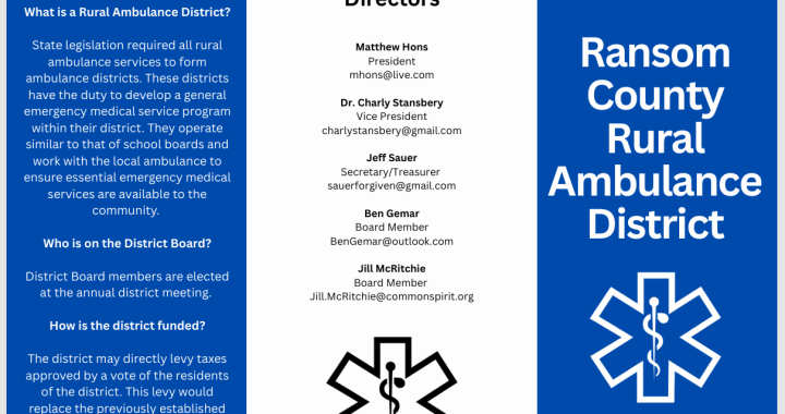 Ransom County Rural Ambulance District Posted on August 4, 2025August 4, 2025 by Janna Miller RCRAD – Mill Levy Brochure Posted in City Government.