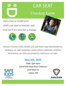 Car Seat Checkup Calendar Add to Calendar Add to Timely Calendar Add to Google Add to Outlook Add to Apple Calendar Add to other calendar Export to XML When: May 5, 2025 @ 2:00 pm – 6:00 pm 2025-05-05T14:00:00-05:00 2025-05-05T18:00:00-05:00 Where: 1018 Main St Lisbon ND 58054 Posted in .
