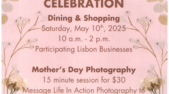 Mother’s Day Celebration Calendar Add to Calendar Add to Timely Calendar Add to Google Add to Outlook Add to Apple Calendar Add to other calendar Export to XML When: May 10, 2025 @ 10:00 am – 2:00 pm 2025-05-10T10:00:00-05:00 2025-05-10T14:00:00-05:00 Where: Lisbon Main Street Posted in .