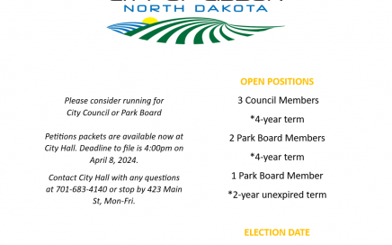 Downloadable copy of minutes: Feb 5 2024 Meeting February 5, 2024 The meeting was called to order by Mayor Tim Meyer. Council Members present Ken Williams, LyDell Mairs, Jeremy Waliser and Ben Gemar. Guests present were Eric King, Tim Jordan, Jeff Leadbetter, Jerry Gemar, Jordan Matzke, Lynn Kaspari – Ransom County Gazette, Tracy Eslinger […]