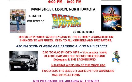 Join us for the 4th Annual Cruise to the Scenic in Lisbon, ND. In addition to being able to see all of the classic cars along Main Street, we will have DeLoreans on display for photo ops, a costume contest, and a free showing of Back to the Future starting at 7pm. Lisbon Business will […]