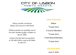 Please consider running for an open position. Petitions are available at City Hall (423 Main