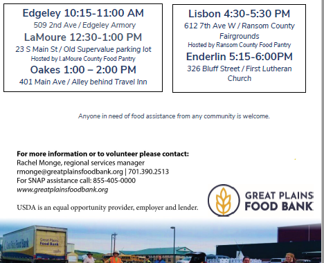 Great Plains mobile food bank Calendar Add to Calendar Add to Timely Calendar Add to Google Add to Outlook Add to Apple Calendar Add to other calendar Export to XML When: August 20, 2021 @ 4:30 pm – 5:30 pm 2021-08-20T16:30:00-05:00 2021-08-20T17:30:00-05:00 Where: Ransom County Fair Grounds assistance food food bank great plains pantry Posted in .